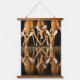 The polyester fabric displayed many wrinkles and several sharp creases throughout. At the bottom of the tapestry, I noticed a bulge in the fabric because it was not pulled tight enough before being connected to the wooden boards. It took me over an hour to spay water on the tapestry before putting it on an ironing board where I used a warm iron over a polyester cloth to remove the wrinkles and creases in the material. I was able to get out the wrinkles and creases that made that tapestry look as beautiful as its picture.