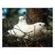 A photograph of three white Ringneck Doves resting securely in a tree nest.