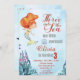Three into the Sea Orange Mermaid 3rd birthday Invitation