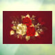 The composition of two artistically painted red roses and one golden rose, decorated with gold, jewel leaves on textured background.