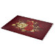The composition of two artistically painted red roses and one golden rose, decorated with gold, jewel leaves on textured background.
