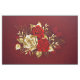 The composition of two artistically painted red roses and one golden rose, decorated with gold, jewel leaves on textured background.