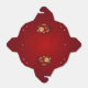 The composition of two artistically painted red roses and one golden rose, decorated with gold, jewel leaves on textured background.