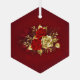 The composition of two artistically painted red roses and one golden rose, decorated with gold, jewel leaves on textured background.