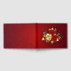 The composition of two artistically painted red roses and one golden rose, decorated with gold, jewel leaves on textured background.
