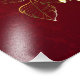 The composition of two artistically painted red roses and one golden rose, decorated with gold, jewel leaves on textured background.