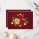 The composition of two artistically painted red roses and one golden rose, decorated with gold, jewel leaves on textured background.