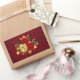 The composition of two artistically painted red roses and one golden rose, decorated with gold, jewel leaves on textured background.