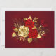 The composition of two artistically painted red roses and one golden rose, decorated with gold, jewel leaves on textured background.