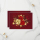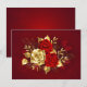 The composition of two artistically painted red roses and one golden rose, decorated with gold, jewel leaves on textured background.