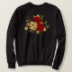 The composition of two artistically painted red roses and one golden rose, decorated with gold, jewel leaves on textured background.
