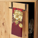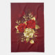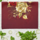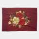 The composition of two artistically painted red roses and one golden rose, decorated with gold, jewel leaves on textured background.