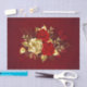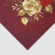 The composition of two artistically painted red roses and one golden rose, decorated with gold, jewel leaves on textured background.