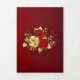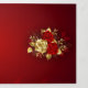 The composition of two artistically painted red roses and one golden rose, decorated with gold, jewel leaves on textured background.