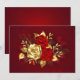 The composition of two artistically painted red roses and one golden rose, decorated with gold, jewel leaves on textured background.