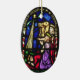 A depiction of the Three Wise Men following the star to Bethlehem from a stained glass window designed by Harry Clarke Studios