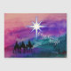 Beautiful watercolor scene with the silhouette of the Three Kings journeying to the new born Jesus. Religious Christmas card proclaiming the birth of Christ.