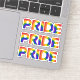 Celebrate your LGBTQ pride with the word "PRIDE" in bold rainbow coloured letters on three stickers. Other sizes available in the sidebar.