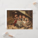 This design features a painting by the English Victorian-era painter Joseph Clark (1834–1926). It depicts three young girls huddled together under an umbrella in a woodland landscape. Each of the girls is holding a small kitten in her lap. Two of the kittens are grey and one is black. The girls are smiling happily as the hold the young cats. One of the girls is also holding an apple that she is eating. The original artwork was painted by Joseph Clark in 1883.