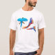 A blue and gold, scarlet and Camelot hybrid macaw parrots on a comfortable cotton t-shirt by Two Purring Cats Studio. A great gift idea for pet parrot and wild bird lovers.