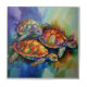 Three magnificent King Turtles set out on a technicolor sea. The long