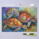 Three magnificent King Turtles set out on a technicolor sea. The long