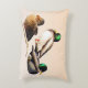 This accent pillow features an artistic rendering of three Mallard Ducks perched on a pale orange gradient background. The male ducks can be identified by their iridescent green heads and yellow beaks. The females have lovely feathers in shades of brown and gold with orange beaks. The image is repeated on the back.