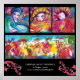 Colourful mysterious Venetian masquerade mask.. whimsical artistic watercolor,acrylic,tempera painting in bright aqua blue ,green,teal,pink,fuchsia,white ,sparkling iridescent colours,golden and silver foil, inspired from Carnival of Venice.2009.
