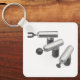 Three massage guns with different massage heads key ring