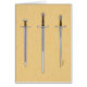 A Norman-period sword with a Brazil nut pommel, a long-bladed "Great Sword" or "Sword of War" of the 13th or 14th century, and an acutely pointed thrusting sword of the Late Middle Ages appear side-by-side in this original illustration by Richard H. Fay.