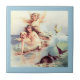 Three young mermaids are watching a dolphin. From an antique postcard. Pastel colours and lovely old painting make fun gifts for women and girls.