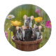 Pictured Are Three Grey And White Mice In Flower Pots.