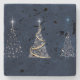 Three Modern Art Christmas Trees on Blue Stone Coaster