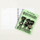 This planner is light green with a sheet of black music notes and three musical black cats wearing white shoes playing their instruments while standing on the sheet of music. Customise your text on the front with the template.