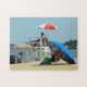What a fun puzzle! Features gorgeous painting style art of a lifeguard and three colourful umbrellas on the beach in sunny summertime. Painting style in sunny, summery bright colours. This would make a great family activity on a rainy day at the shore!
