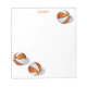 This basketball themed notepad features 3 tiny basketballs with alternating recolored orange and white panels that appear to have stopped rolling right on the notepad - personalise with the athlete's name - by katz_d_zynes
