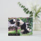 Postcard: Three Giant Panda bears playing and rolling down from wooden platform, while having lots of fun. Iconic Chinese bear with distinct black and white fur is famous for its slow motion movements, bamboo eating and cute looks. Travel/Adventure series -Animals around the world, China. Original Photography/Art/Design by work4dream.