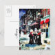 Three persons standing on a street singing christm holiday postcard
