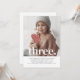 A simple Third Birthday invitation featuring your own photo and the words 'three.' over the top.