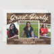 This graduation party invitation beautifully blends rustic charm with personal touches, creating a memorable keepsake for your special celebration. On the front, a rustic wood planked background sets a warm, inviting tone, as three of your favourite photos are artfully arranged in a collage. At the top, the words "Grad Party" are elegantly scripted in a playful brush font, capturing the festive spirit of the occasion. Below, the invitation honours the graduate by name, accompanied by the date of the event, all in a harmonious layout that feels both personal and celebratory. The back of the invitation continues the rustic theme, offering a dedicated spot for another cherished photo and room to include all the essential event details, ensuring your guests have everything they need to join in the celebration. Stand out in the crowd with this rustic grad party invitation that is a heartfelt tribute that celebrates the joy of sharing this milestone with loved ones.