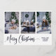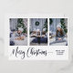 Three Photo, Elegant Merry Christmas Script Silver Foil Holiday Card