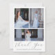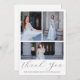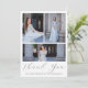 This modern quinceanera thank you postcard features a three photo collage front with pretty calligraphy on a white background. A sweet editable thank you message is on the back and features a watercolor airy blue floral bouquet. This elegant fifteenth birthday thank you card is editable for a variety of occasions, or to update to your own personal thank you message.