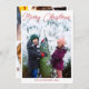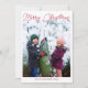 Three Photo Vertical Red Script Merry Christmas Holiday Card