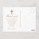 This elegant Catholic First Holy Communion thank you postcard features a three photo collage front with pretty white typography on a black background, a sweet editable thank you message is on the back with a simple gold cross and return address. This First Holy Eucharist thank you card is editable for a variety of Christian religious occasions, or to update to your own personal thank you message. This card is also available in white and gold.