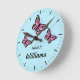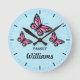 Three Pink Butterflies With Family Name Round Clock
