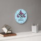This clock features three beautiful illustrations of pink butterflies on a blue background colour. The clock face is made of simple and stylish black lines.