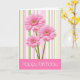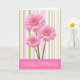 A brightly coloured flowers and stripes birthday card. The text inside the card, which reads 'Hope you have a great day' is customisable according to your own personal preference.