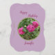 THREE PINK ROSES, LAVENDER BACKGROUND (COLORS, FONTS, TEXT ALL CUSTOMIZABLE). BACKSIDE HAS SPACE FOR YOUR OWN ADDITIONAL MESSAGE.