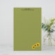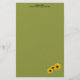 Personalise this floral designed stationery adorned with three sunflower photographs in the lower right corner over a textured green background. Simply fill in the information or click customise to change the font style, colour, and size.