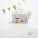 Step into the enchanting world of Halloween with our delightful Halloween Favour Bag, featuring a charming design that is sure to enchant. Against a backdrop of a light grey sky, three super cute pumpkins in off-white, orange, and pink, along with a playful bat, take centre stage, adding a whimsical touch to the scene. The design captures the essence of Halloween with its cheerful pumpkins and friendly bat, creating a festive and inviting atmosphere.
